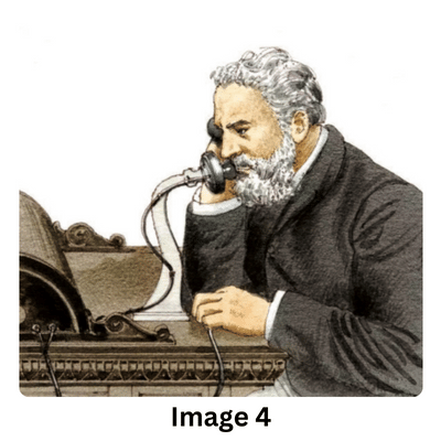 The Fact: This illustration refers to a scientist named Alexander Graham Bell. He was a renowned scientist and inventor. But his biggest identity, he is one of the inventors of the telephone. In this picture, it is seen that he is talking with the help of his invented telephone. He invented the telephone in 1876. He was granted the first US patent for the telephone that year.